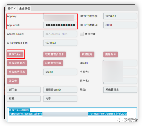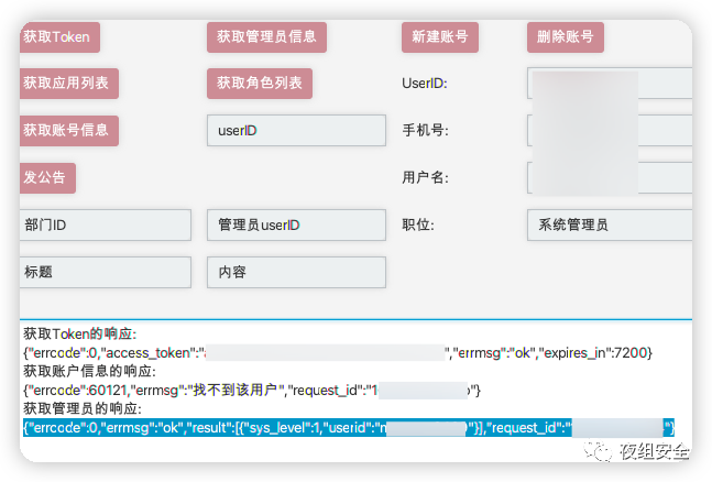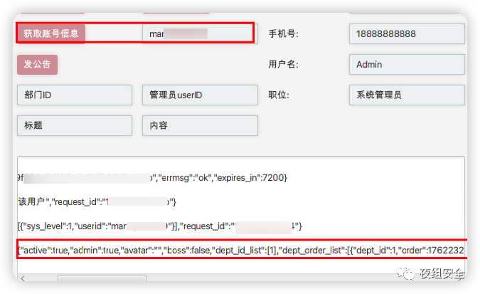 查userid可以得到部门id dept_id,这里只做了对部门发公告,实际操作中针对个人发公告效果不如直接加用户钓鱼好使。