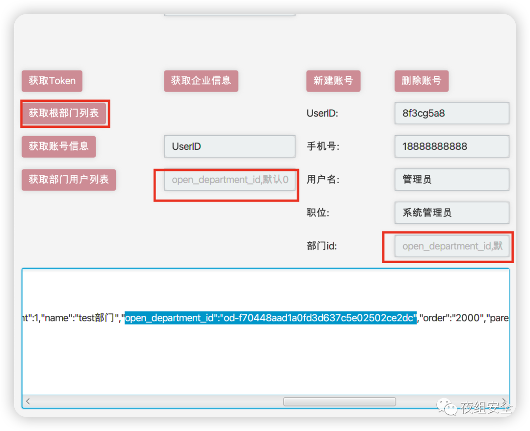 需要注意,open_department_id为查询到的部门id,用户默认是放根部门,比较明显。可以放小部门里。