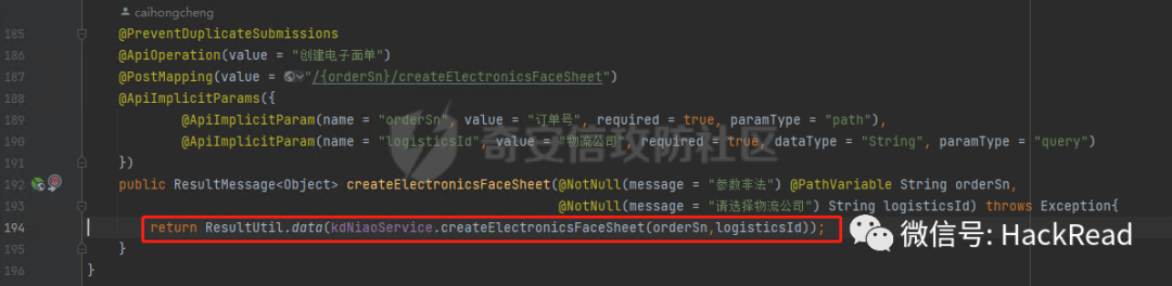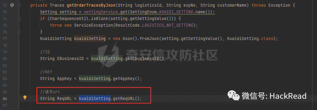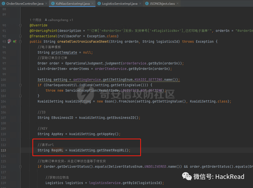 但它存在两个用法,分别是AfterSaleServiceImpl和OrderServiceImpl,分别是查看订单里的查看物流功能和退货后里的查看物流功能,总共有五处可以触发该功能。