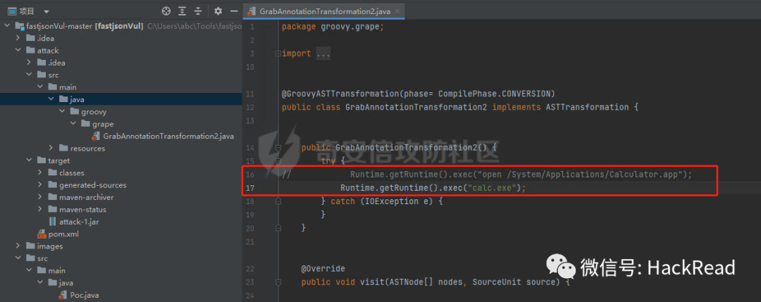 修改attack/src/main/java/groovy/grape/GrabAnnotationTransformation2.java
