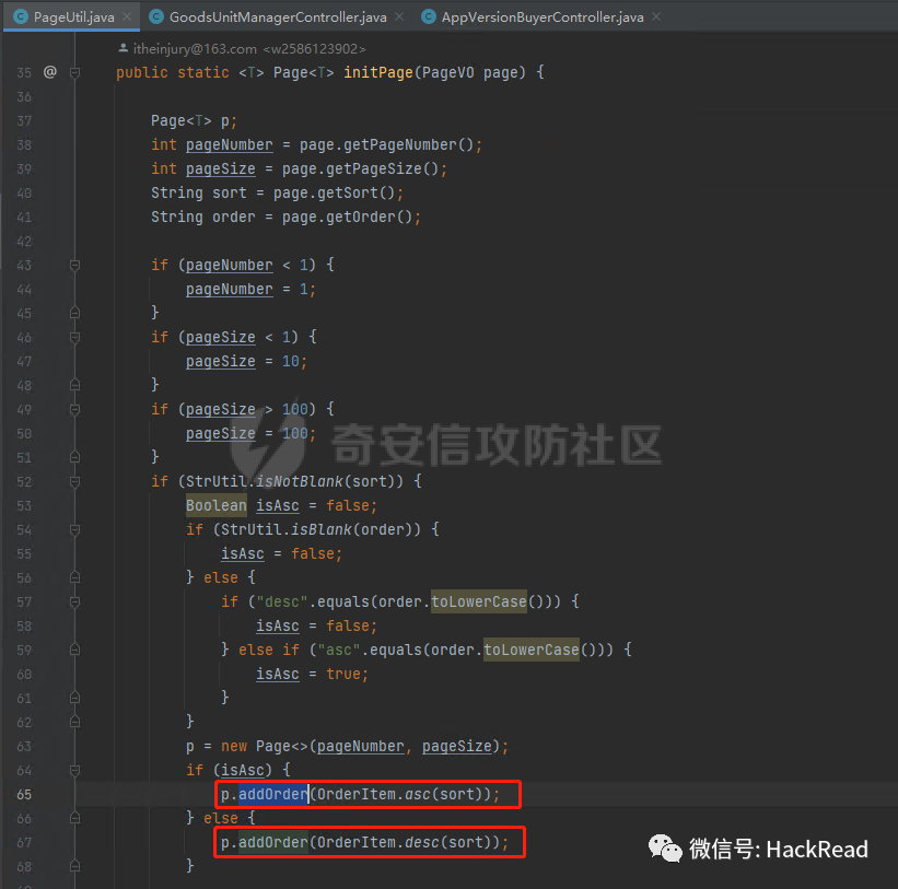 其中的initPage函数处理中使用了addOrder但是没有对sort进行SQL语句过滤。framework/src/main/java/cn/lili/mybatis/util/PageUtil.java