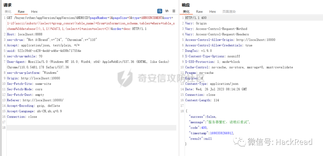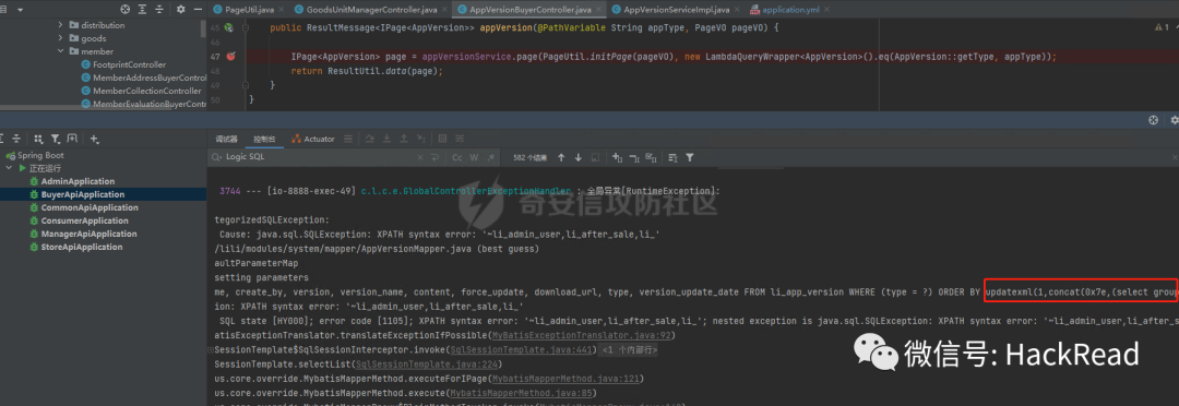这里的SQL注入漏洞点都是由一个地方导致的,漏洞注入的地方为order by,依据 Mybatis 特性不能多行执行,且存在函数黑名单,所以利用上有限。
