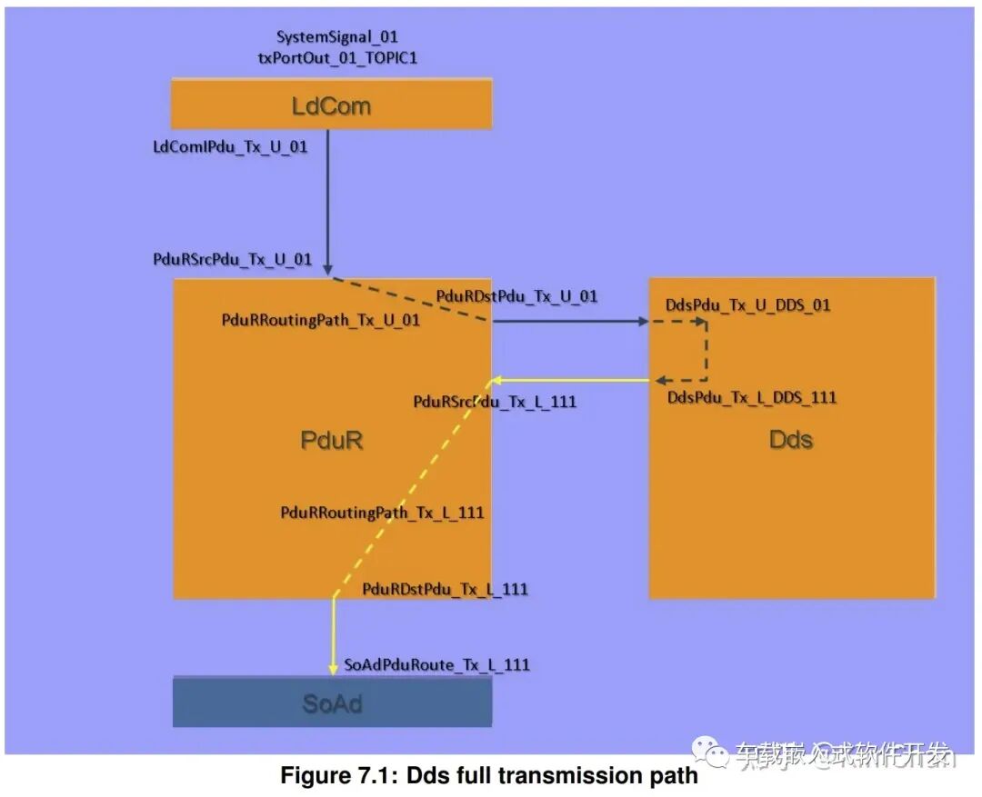 基本上,在发送端,Dds数据是在应用层创建的,并直接传递给RTE(作为未序列化的数据),然后转发给LdCom,PduR,然后作为一个PDU转发给Dds模块,没有经过任何修改或转换(在接收端也是如此)。RTE,LdCom和PduR(作为上层)只是简单地充当透传模块。序列化是在Dds BSW内部执行的,对AUTOSAR堆栈完全不透明。Dds BSW应该知道复制数据的确切数据类型。