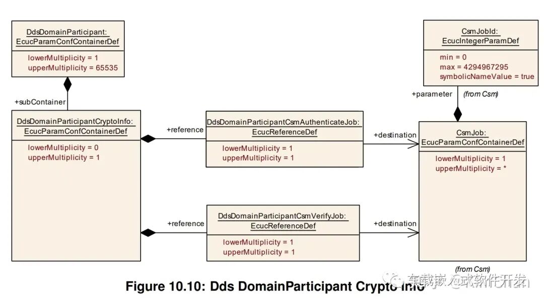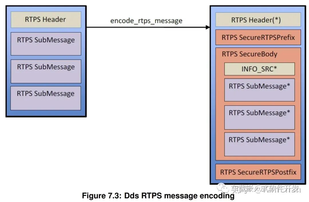 如果配置了,整个RTPS消息的消息认证码(MAC)会被添加。AUTOSAR CSM用于密钥管理和MAC计算,要使用的算法是可配置的(从支持的算法中选择)。