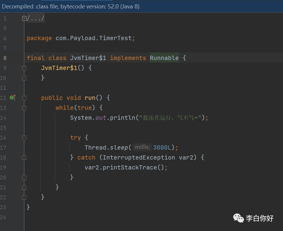 对于在thread创建新的守护线程,由于在线程要加入自己写的恶意代码,必然在Runnable() 接口的run方法实现恶意代码逻辑,对于这类如何检测,经过我测试,对于每个thread中的target