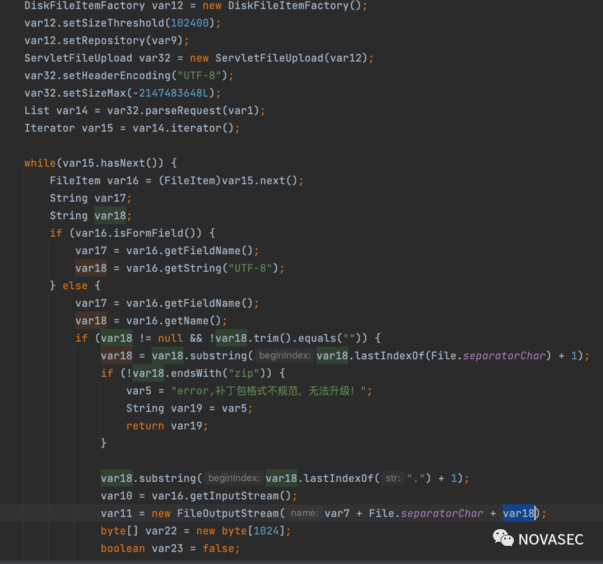 weaver.upgradetool.upgrade.UploadHandle#upload这里同样也对token做了校验,当通过token校验后,对上传的文件后缀校验是否为zip,然后写入到相应的文件夹并拼接文件名