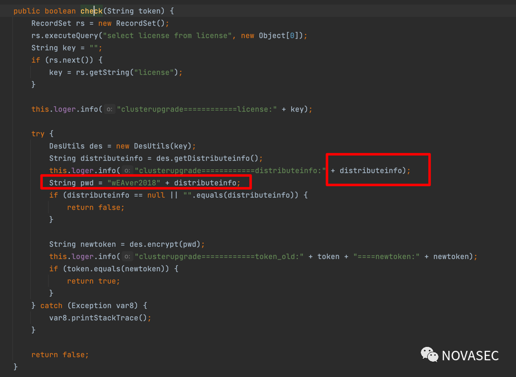 1、des算法的加密key为license2、token=des.encrypt("wEAver2018"+distributeinfo)