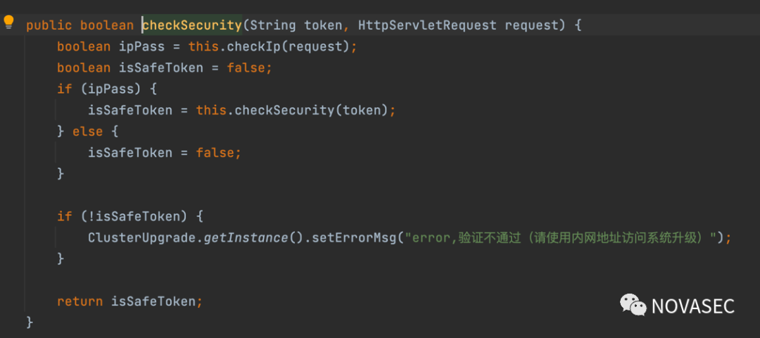 进一步分析token校验方法cluster.checkSecurity(),检查能否绕过检查: