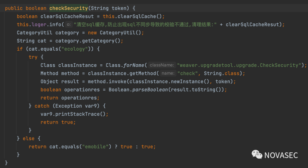 checkSecurity方法类路径:weaver.upgradetool.upgrade.ClientOperation#checkSecurity(java.lang.String)