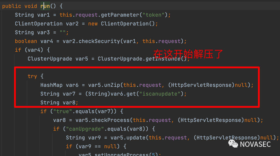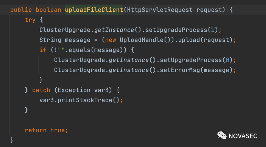 这里和/clusterupgrade/uploadFileClient.jsp中是同一种方法不再分析,往下走进入更新: