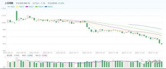 二、目前A股正处于新一轮下跌趋势,各大指数已经跌出短期均线,多个指数创下历史新低,因此趋势下跌也抑制了盘面;