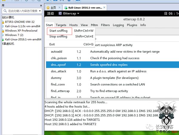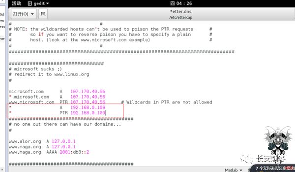 一切都设置好了,执行exploit。下面我们进etc/ettercap目录下设置etc.dns如图: