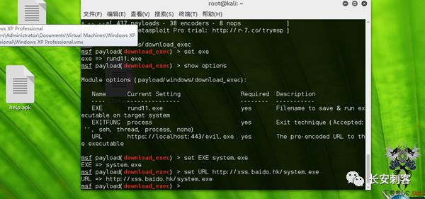 然后setEXE system.exe,再执行set URL,需要说明一下URL就是我们的马的下载地址,这里我们用远控马,远控配置使用不再详细说明。。。如图: