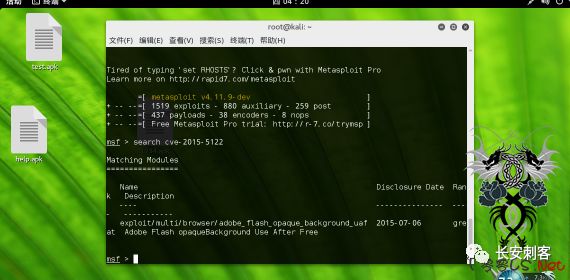 第三篇 cve2015-5122漏洞实例演示虚拟机关于cve2015-5122这个漏洞,大家可以百度一下,是关于flash的漏洞,是2015年flash漏洞的第二发,今天我们就用这个漏洞来演示,开启kailinux msfconsole命令启动msf如图: