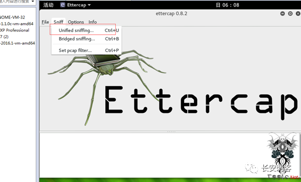 然后ettercap-G命令打开ettercap,我们要攻击的主机ip是192.168.0。115