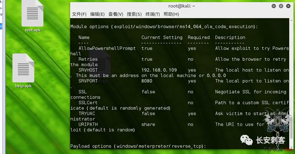 set LHOST 192.168.0.109 //ip为kaili的ip
