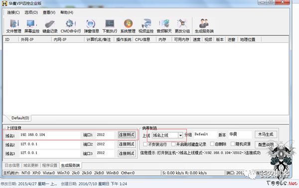 192.168.0.104是我的物理ip,然后选择域名上线方式,生成木马丢到web跟木下,下面我们用k8飞刀工具来生成一个网马,点编码然后输入木马地址:http://192.168.0.104:89/server.exe然后点右键hacking-0day-ie全版本漏洞,生成网马如图: