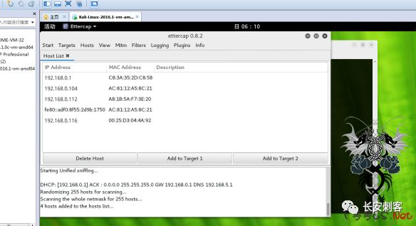 192.168.0.113为kali的ip地址,然后ettercap -G启动图形化界面,点