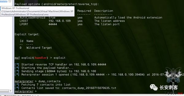 set LPORT 44444 //端口一定要与前面生成的木马的端口一致