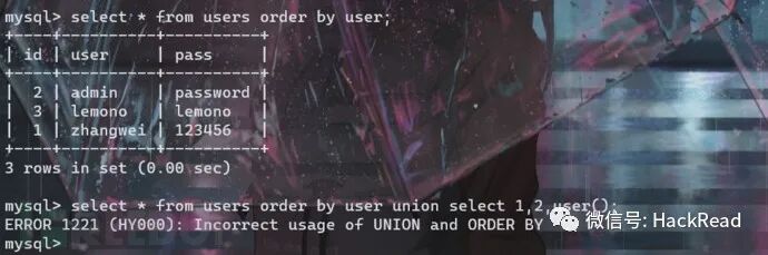 在SQL中是不允许union直接跟在order by后面的,所以我们可以考虑使用盲注或报错注入。