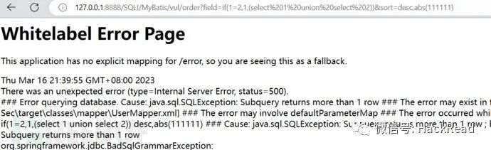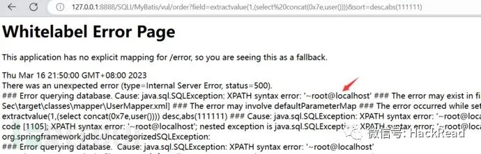 上面使用的盲注,springboot项目是默认有报错页面的,所以报错注入也可以