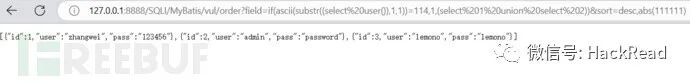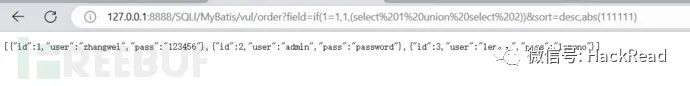 使用if条件句,if(1=1,id,user),if函数三个占位,1=1为表达式,也是后续注入主要利用的地方,表达式为真返回以id排序,为假返回user排序,而真假返回的查询结果是不一样的,所以可以通过这种方式注入。