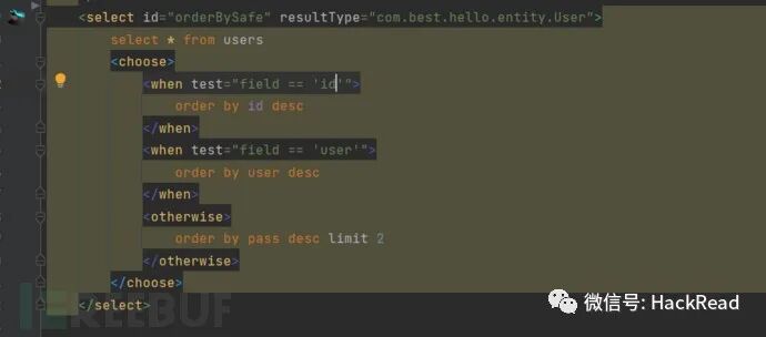 实际上他是在xml中固定化了传入参数,id或user,也就没办法注入了。