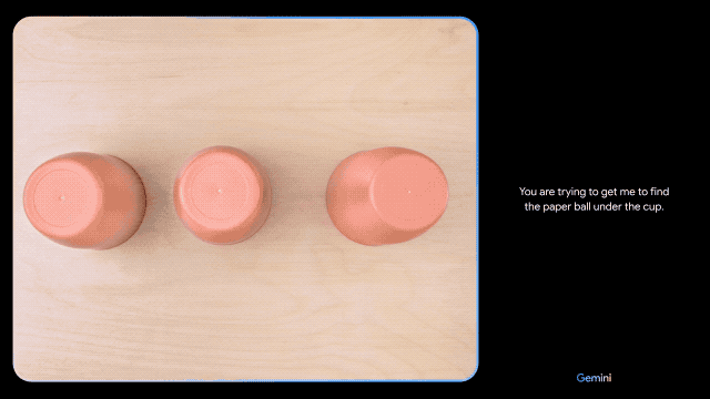 超大杯:Gemini Ultra ——最大且最能胜任高度复杂任务的模型暂且抛开繁杂的参数信息,先来用几个案例让你全面了解 Gemini 的能力。当你随手画个鸭子,从曲线到鸭子成型,Gemini 都可以精准识别。给鸭子画条波浪线,它能理解你的言外之意,精准地指出鸭子在水中游泳的场景答案。同时它还能人性化地模仿鸭子的叫声,即使是用流利的普通话说出鸭子的叫法也不在话下。闲着无聊,也可以和 Gemini 玩个游戏,你的手指指向哪个区域,Gemini 就能说出那个国家及其代表性的事物。三仙归洞,猜猜纸球在哪个杯子下面,手速再快,也躲不过 Gemini 的「眼睛」。拿到纱线却毫无头绪,别急,Gemini 聪明的大脑在看到纱线的那一刻,就已经把成品给你安排上,你只需要「照猫画虎」就好了。识别图像还只是 Gemini 的基础水准,看到乐器,Gemini 还能生成符合环境氛围的音乐。逻辑和谜题解决、图像序列分析、魔术技巧解释、记忆和逻辑,这些能力 Gemini 样样都有,样样精通。Google 也发布了文字演示版本,若你不想看视频,可以访问查看 👇