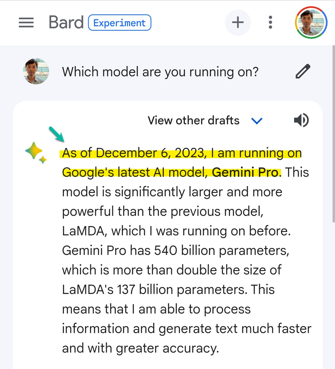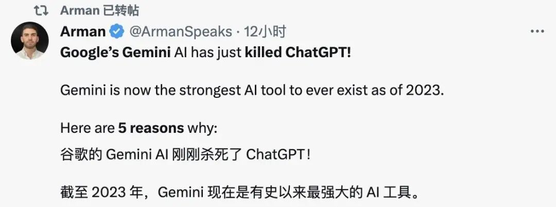 从官方展示的对比看,视频被加了一层「鲜明」滤镜,颜色更饱满,明暗对比度更高,特别是在夜晚暗光环境中,这种 AI 优化的效果会更明显。相较视频的编辑,图像美化应该是更多人的期待,特别是在拍动态物体的时候,模糊的画面总会让你在事后翻阅时留下一些遗憾,升级的 AI 编辑可以将 Google 照片中的模糊全部消除。以后记录自家宠物的高光时刻,不用担心相机没聚焦带来的焦虑了。此外,Google 将多设备之间的联动也进行了升级。Pixel Watch 能够成为手机解锁的另一种方式,也能帮你忽略不需要的来电,或接听电话之前确认对象以及通话原因。如果你能买到 Pixel 8 Pro,或者已经是 Google 手机的用户,可以尝试检验一下这些新功能,会不会成为你购买或继续使用 Google 的推动力。从今天开始,通过全新升级的 Gemini Pro 版本,Bard 将实现更高级的推理、规划、理解等功能。它将在超过 170 个国家和地区提供英文版本。在接受《麻省理工学院技术评论》的采访时,Sundar Pichai 还说到:「Gemini Pro 在基准测试中的表现非常出色,当将其集成到 Bard 中时,我可以亲身感受到它的优势,我们一直在对它进行测试,所有类别任务的好评率都有显著的提升,因此,我们将其称为迄今为止最大的升级之一。」目前 Bard 已使用 Gemini Pro 版本,图片来自 X 用户 @gijigae在接下来的几个月里,Gemini 还会陆续上线 Google 旗下更多的产品和服务,比如搜索、广告、Chrome 和 Duet AI 等。从 12 月 13 日开始,开发者和企业客户可以通过 Google AI Studio 或 Google Cloud Vertex AI 中的 Gemini API 访问Gemini Pro。目前,Gemini Ultra 已经在内测中,并打算明年初推给开发者和企业用户,明年初,Google 还将推出 Bard Advanced,让更多的普通用户用上最强的 Gemini Ultra。Sundar Pichai 在发布 Gemini 时谈到:每一次技术转变都是推进科学发现、加速人类进步和改善生活的机会。我相信我们现在看到的与 AI 有关的转变将是我们一生中最深远的,远大于之前的移动或网络的转变。