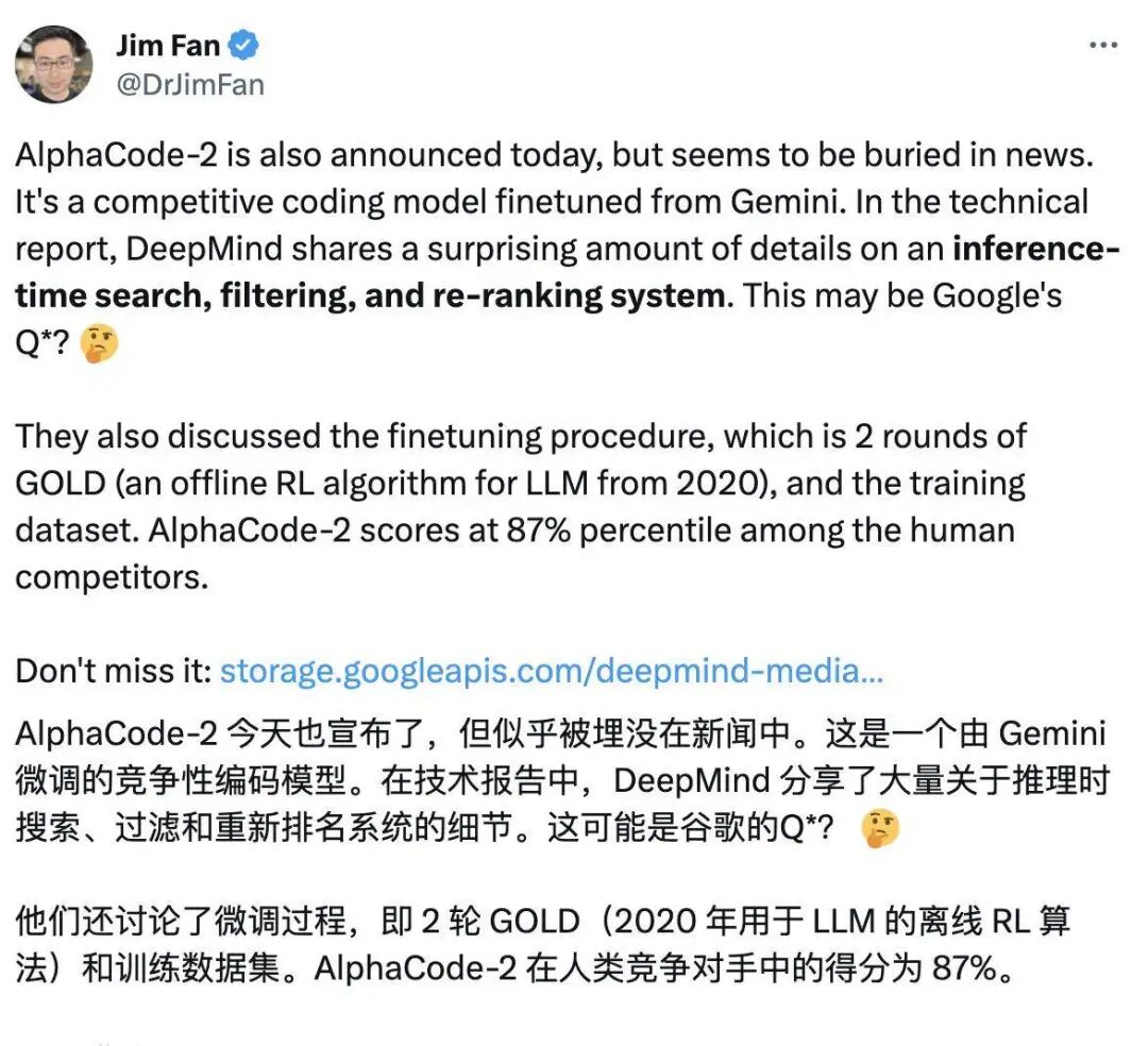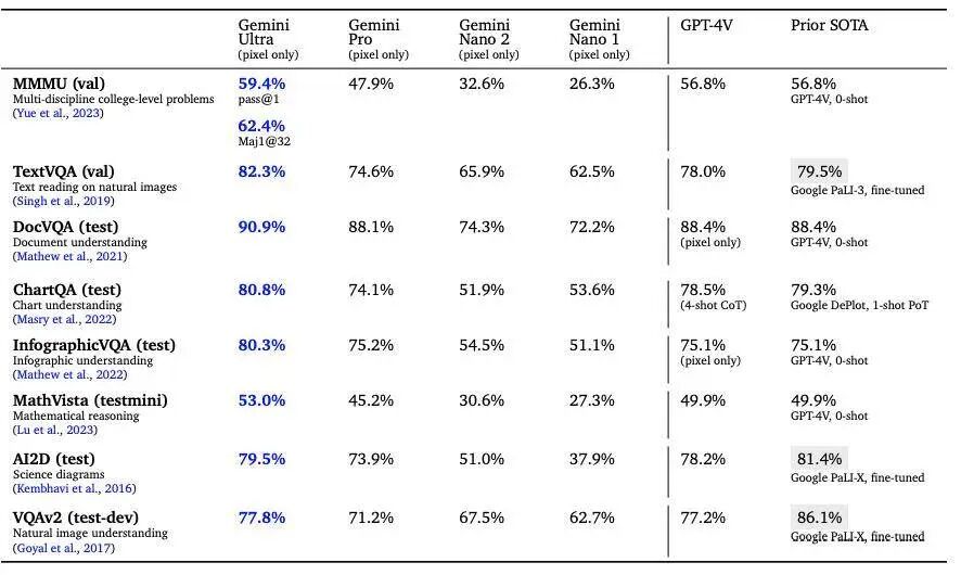 https://developers.googleblog.com/2023/12/how-its-made-gemini-multimodal-prompting.html 或许是这个视频过于震撼,部分网友质疑 Google 这个视频存在「造假」的可能性,不过 Gemini 将很快在 Google AI Studio 中向公众开放,届时便能一辩真假。据 Google 官方显示,从自然图像、音频和视频理解到数学推理,Gemini Ultra 的性能在 32 个广泛使用的大型语言模型(LLM)研究和开发的学术基准测试中,超过了30个当前最先进的结果。从 Google 放出的测试结果来看,在文本、常规推理、数学、代码等领域,Gemini 的表现几乎是全方位碾压了 OpenAI 的 GPT-4。MMLU(大规模多任务语言理解)是测试 AI 模型知识和解决问题能力的最流行方式之一。Gemini Ultra 在该测试中以 90.0% 的准确率成为首个超越人类专家的模型,作为对比,GPT-4 只有 86.4% 的准确率。新的 MMMU 基准测试包含了跨不同领域的多模态任务,对多模态大模型的检验程度更高,但超大杯 Gemini Ultra 同样取得了 59.4% 的高分。Google CEO Sundar Picha 在接受《麻省理工学院技术评论》的采访时表示,Gemini 之所以令人瞩目,其中一个重要原因是它从根本上就是一个多模态模型,就像人一样,它不仅从文本中学习,还能通过视频、音频和代码进行学习。多模态是 Gemini 花时间打磨的原生特性,Gemini 1.0 能同时识别和理解文本、图像、音频等多种信息,理解信息能力更强,在回答与复杂主题相关的问题也能游刃有余。在多模态 SOTA 的测试中,Gemini 图像、视频、音频的多模态测试水准再次遥遥领先。代码是检验大模型水平的重要指标之一,Gemini 1.0 跨语言工作和推理复杂信息的能力是它的强项,能够理解诸如 Python、Java、C++ 等高质量代码。两年前,Google 推出了 AlphaCode,这是首个在编程比赛中达到竞争水平的 AI 代码生成系统。现在, AlphaCode 推出了第二代,这是一个由 Gemini 微调的竞争性编码模型,在与原始 AlphaCode 在相同的平台上较量时,AlphaCode-2 在人类竞争对手中的得分为 87%,而此前 AlphaCode 的得分只有 46%。AlphaCode-2 技术报告地址 🔗:https://storage.googleapis.com/deepmind-media/AlphaCode2/AlphaCode2\_Tech\_Report.pdf在技术报告中,Google DeepMind (AlphaCode 2 出品人)分享了大量关于推理时搜索、过滤和重新排名系统的细节。英伟达高级科学家 Jim Fan 直夸这些最新成果堪称 Google 的 Q*(可以简单理解为 AI 的大突破)。thehiredai CEO Arman 大胆地作出预测:「Gemini AI 刚刚杀死了 ChatGPT!」值得一提的是,Google 还宣布推出迄今为止最强大、最高效、最可扩展的 TPU 系统:Cloud TPU v5p。Gemini 1.0 的训练正是在 Google 内部设计的 Tensor 处理单元(TPUs)v4 和 v5e 的 AI 优化基础设施上进行的。Google Cloud CEO Thomas Kurian 对于自家产品,毫不吝啬地夸赞道:「Cloud TPU v5p 是我们迄今为止功能最强大、可扩展性最强的 TPU 加速器,其训练模型的速度比其前代产品快 2.8 倍。」手机是新技术破圈的重要媒介,Gemini 想要大规模走进大众社会,Pixel 8 一定是其不二之选。Pixel 8 Pro 作为第一款内置人工智能的手机,已经在高新技术民用化的道路上建立了良好的口碑,从已经上手 Pixel 8 Pro 的用户反馈看,Google 把 AI 和手机终端应用结合得相当不错。在此基础上,Google 官宣中杯大模型 Gemini Nano 从今天开始,将在 Pixel 8 Pro 上正式运行。消息一出,PassionateGenius CTO Morimoto 已经迫不及待想要体验在 Pixel 8 上跑大模型了。作为首款专为 Gemini Nano 设计的智能手机, Pixel 8 Pro 有两项专属的拓展功能将在后续的更新中加入:「记录器摘要」和「Gboard 智能回复」。即使没有网络连接,记录器也可以获得手机对话录音、采访、演示等内容的摘要,强大的终端硬件是支撑这个功能的依托,而优化的侧端算法让「断网不断线」成为了可能。智能回复功能很像我们挂断电话后的自动回复,但和传统的固定内容相比, Gemini Nano 可以识别来信的内容,根据不同的语句生成对应的回信,语言也会更加自然亲切,有种明星的运营团队在社交平台回复粉丝的即视感。这两项功能目前只支持英文文本的识别,但转头一想对本身就买不到 Google 手机的我们好像也没有任何影响,不过能买到 Pixel 8 Pro 的非英语国家的用户,还需要再静候一段时间。而在生产力方面的优化,在大洋彼岸 Pixel 终于赶上了国内的基本水平。类似的照片和视频的 AI 编辑功能在新机首发时,就成了 Google 新机的代名词,现在继续优化的 AI 编辑优化,可以让手机再加一件「专业编辑器」的新装。全新清洁功能可以帮助去除扫描文档中的污迹、污渍和折痕。现在只用在相册里滑动几下,即可消除图片中的污渍。借助 Google Tensor G3 的强大功能,Pixel 8 Pro上的视频增强模型,可在云端调整颜色、照明、稳定性和颗粒度。![]()