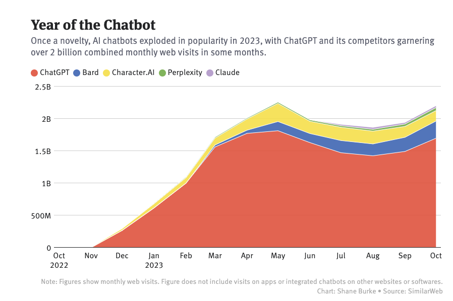 昨天深夜,Google 突然发布重磅 AI 杀手锏——Gemini。多模态 Gemini 可以理解、操作和结合不同类型的信息,包括文本、代码、音频、图像和视频。在去年 ChatGPT 发布不到两周后,Google 就已经拉响「红色警报」来应对挑战。可紧急上线的 Bard ,却在首次亮相就出现错误,一夜让 Google 蒸发了 1000 亿美元市值。在过去的一年里,基于大模型的聊天机器人单月访问量已经超过 20 亿, 其中 ChatGPT 遥遥领先,Google Bard 虽然排在第二,但和几个竞品一起归为「其他」更为合适。因此,Gemini 早已被寄予了赶超 ChatGPT 的厚望,无论成败,它就是 Google 过去对 AI 大模型孤注一掷的成果。Gemini 1.0 共官宣中杯、大杯、超大杯三种不同规格。中杯:Gemini Nano —— 最高效的设备任务模型