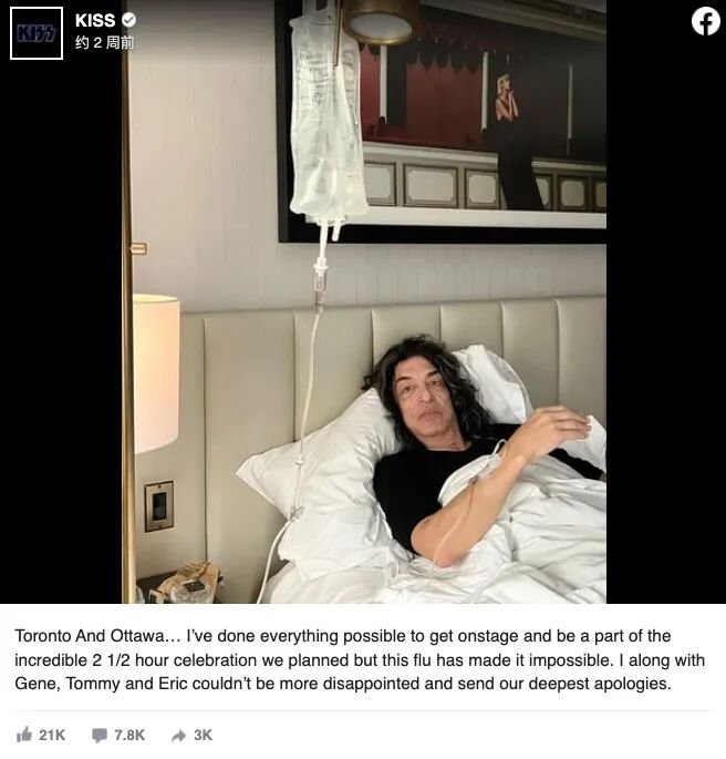 KISS 乐队成员Paul Stanley 说道。上个月,他因为严重流感不得不取消了三场在加拿大的演唱会。Paul Stanley 在社交媒体上就取消演出致歉经过多轮成员更改,现在剩余的两位原始成员 Paul Stanley 和 Gene Simmons 都已经年过七旬,但仍在过去四年和另外两位 60+ 成员化上经典妆容,巡游世界进行告别巡演「End of the Road」。在巡演最后一晚,乐队正式在舞台上宣布,KISS 乐迷的「爱让我们永生,一个新的时代正式开启」,KISS 虚拟乐队正式登场。通过和著名电影特效公司「工业光魔(Industrial Light & Magic)」合作,KISS 以电影特效中常用的动作捕捉技术打造了四个虚拟乐手。乐队永远都不会停止,因为拥有乐队的(不是我们),是粉丝。