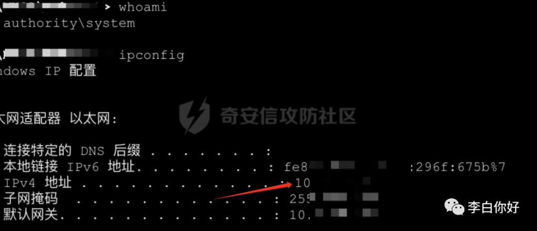 ipconfig发现有10段内网,这种网段内网一般都很大