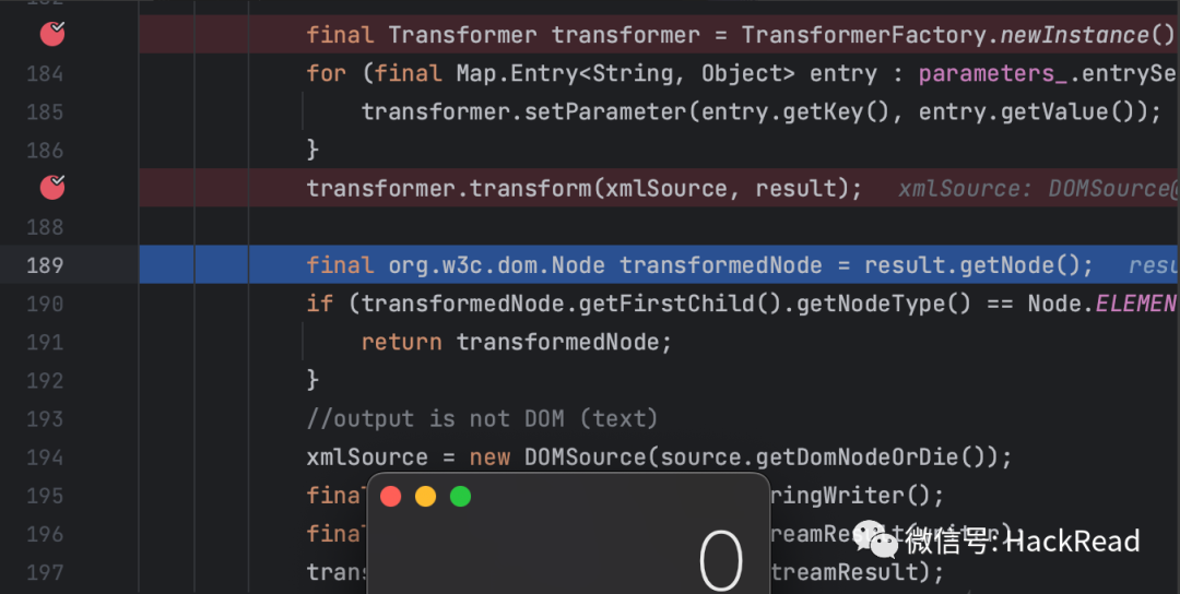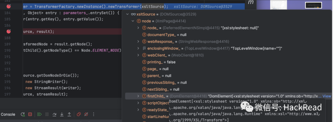 先在漏洞代码所在的函数加上断点,函数所在位置org.htmlunit.javascript.host.xml.XSLTProcessor