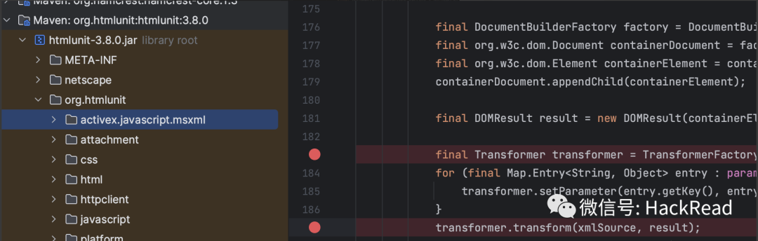 该漏洞的根本原因在于 HTMLUnit 没有对 XSL 转换进行充分的限制,从而导致了安全问题。具体来说,它没有对 XSLT 的外部连接进行适当的限制。由于XSL文件中引用了 Xalan 库,并利用库中函数导致了远程命令执行的漏洞。