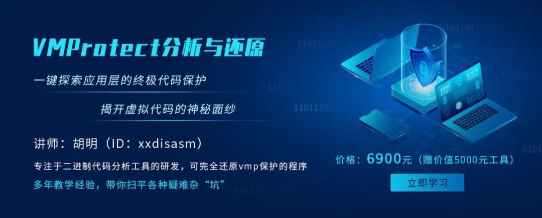 本课程以vmp为例,分享如何脱壳,如何分析虚拟化的代码流程,及如何还原虚拟代码。