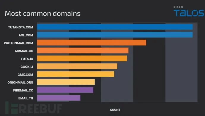 攻击者通常使用免费或者安全的电子邮件服务提供商,如下所示: