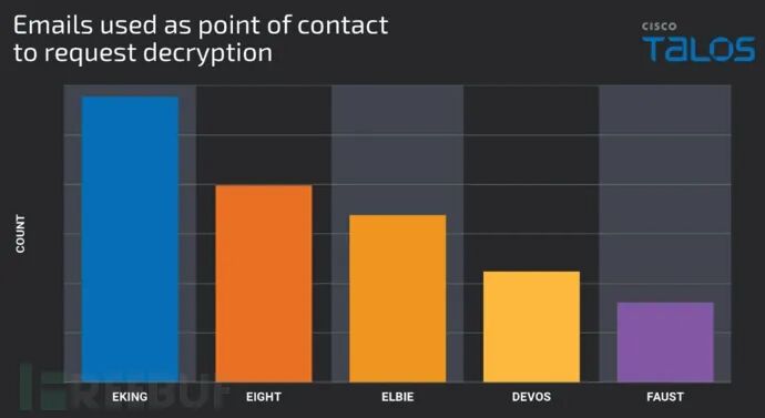 Devos 使用 QQ,而 Eight 使用 ICQ,甚至还有攻击者选择使用安全邮件服务 Proton Mail。这也可以看出,Phobos 拥有多个分散的附属机构,通过勒索软件即服务(RaaS)进行运营。