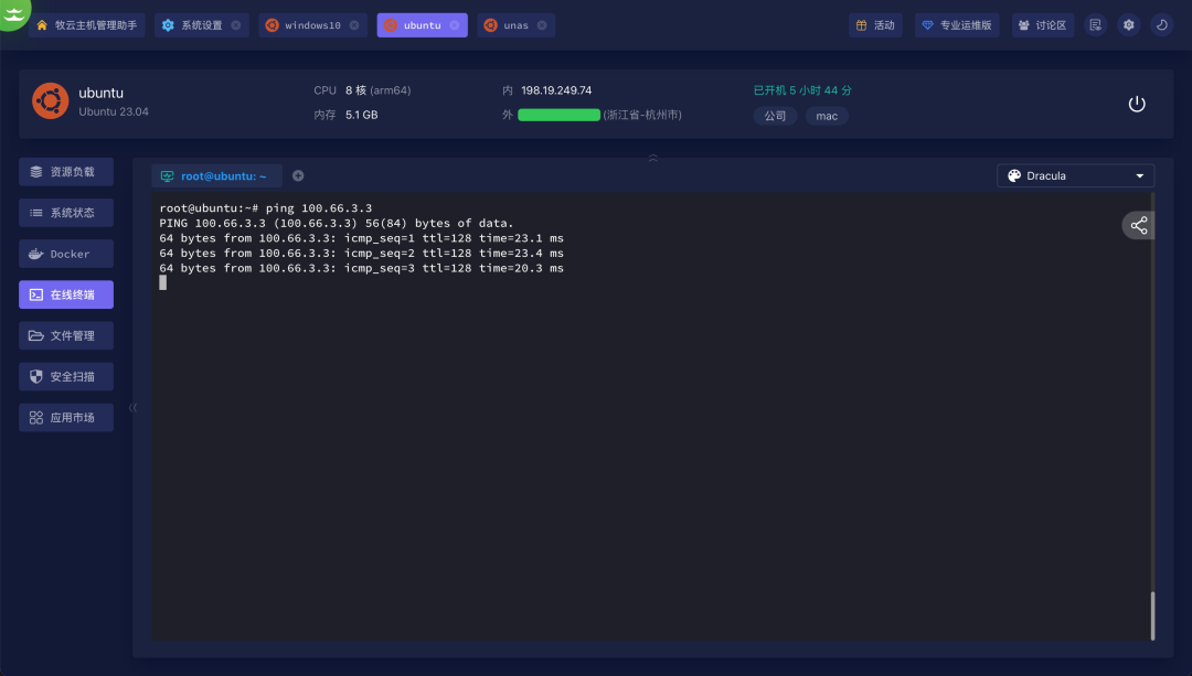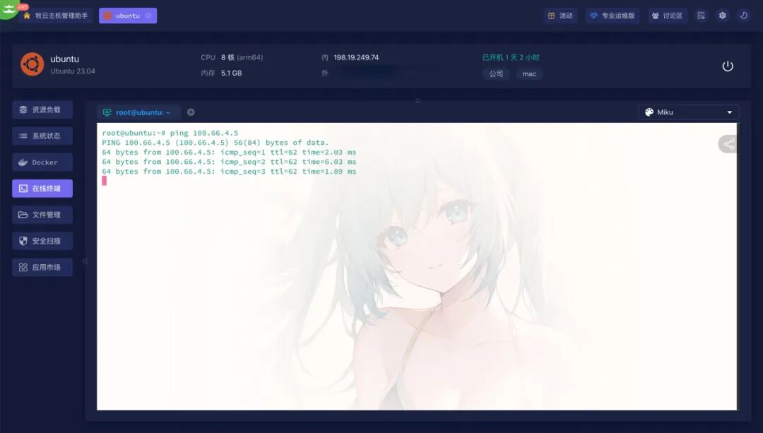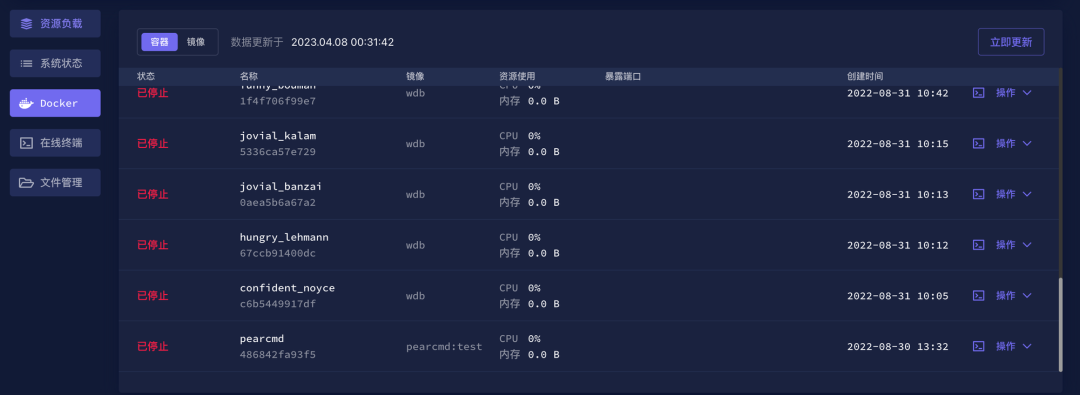 有一些用户从宝塔面板,小皮面板等主机管理面板转移到牧云主机助手。在用户建站需求的 push 下,实现了 docker 管理的功能。支持用户基于 docker 一键部署。