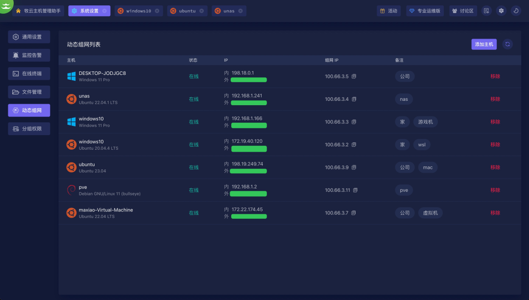 用户表示想访问家里的服务,可以多台服务器组一个大内网,可以互相访问(无需公网IP,无需搭建 FRP ,无需下载向日葵)