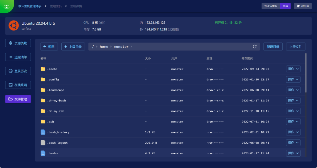 第4周,实现了文件管理功能,可以像windows的资源管理器一样管理主机上的文件了