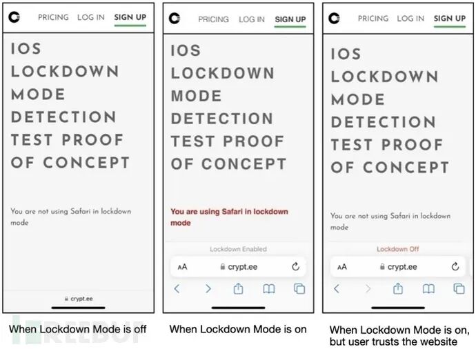 虽然苹果自iOS16起引入了“锁定模式”,以帮助保护设备免受极其少见、高度复杂的网络攻击达,但它并没有阻止恶意负载在受感染的设备上执行,从而能够让恶意程序操纵设备制造虚假的锁定效果。