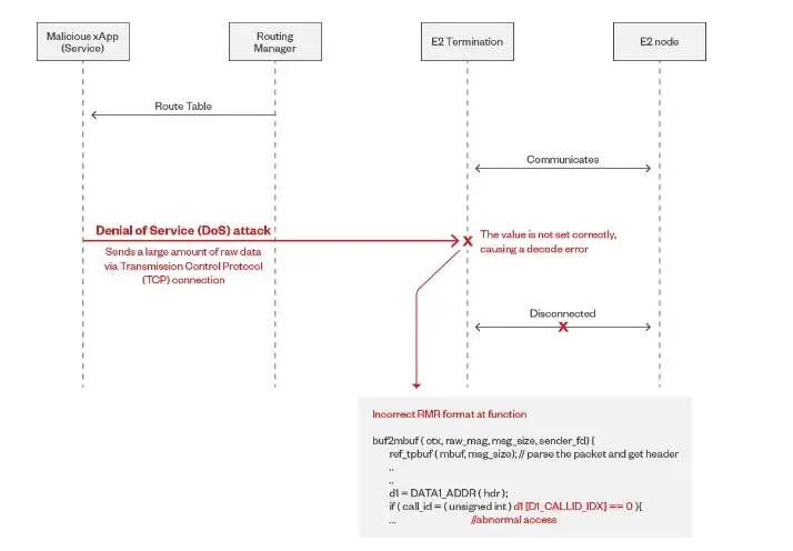 这里描述的两个漏洞会导致DoS事件,它们与xApps、RMR和Near-RT的RIC有关。这些组件提供射频资源优化和流量管理等增值服务。