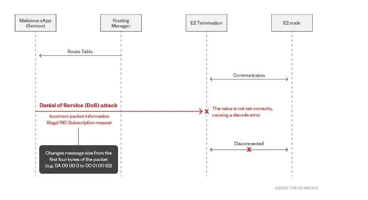 通常情况下,xApps应该来自多个供应商。因此,我们开始研究时假设xApps是一种潜在的攻击媒介,xApp可能会通过供应链或劫持引导进程而受到攻击。即使是良性的xApp,如果它发出意外的或异常的消息,也会造成伤害。我们的研究结果证实了这些假设。