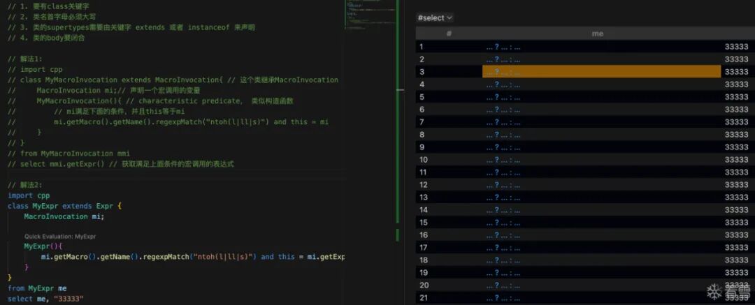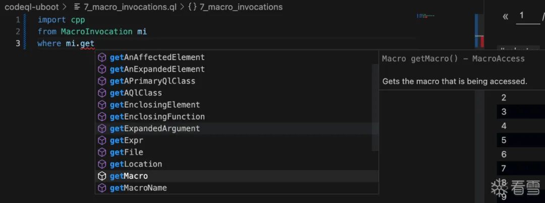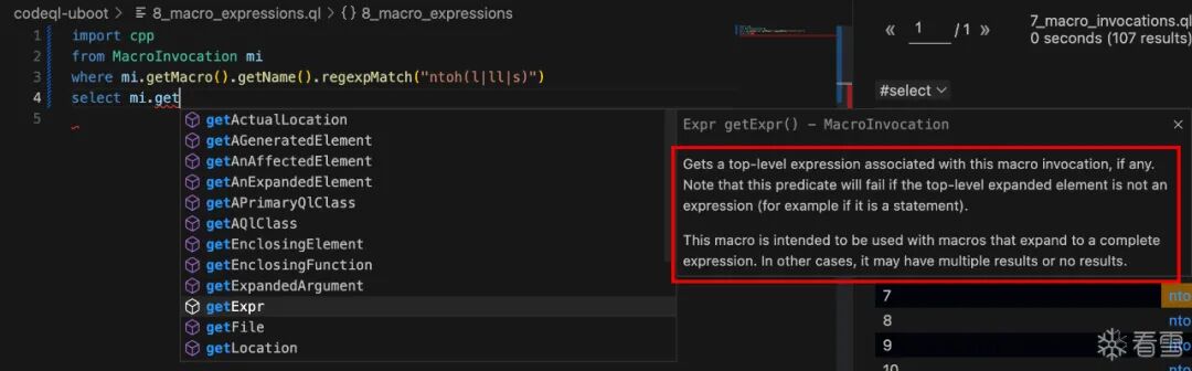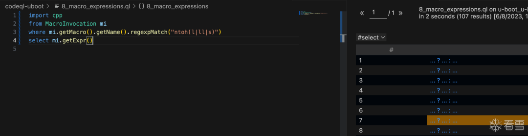 select mmi.getExpr() // 获取满足上面条件的宏调用的表达式