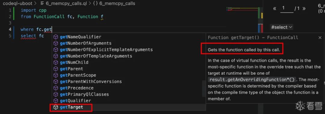where fc.getTarget().getName() = "memcpy" // 如果fc调用的函数的名称是memcpy