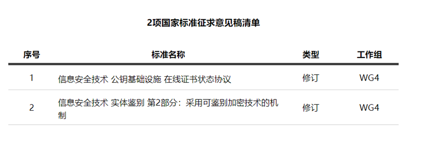 国家标准化管理委员会下达了2022年第三批推荐性国家标准计划、2022年第四批推荐性国家标准计划。其中由全国信息安全标准化技术委员会归口的标准项目共计7项,清单如下。