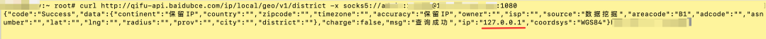 curl http://qifu-api.baidubce.com/ip/local/geo/v1/district -x socks5://username:password@vps:1080