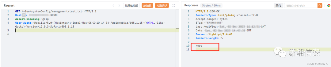 GET /view/systemConfig/management/test.txt HTTP/1.1Host: your-ipAccept-Encoding: gzipUser-Agent: Mozilla/5.0 (Macintosh; Intel Mac OS X 10_14_3) AppleWebKit/605.1.15 (KHTML, like Gecko) Version/12.0.3 Safari/605.1.15